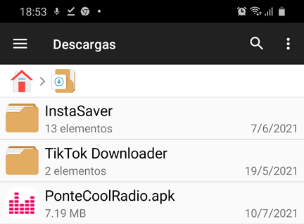 1.- Bajar la App de Ponte Cool Radio dando un click en el boton Download. 2.- Ubicamos la app en la seccion Descargas o Downloads en nuestro celular.